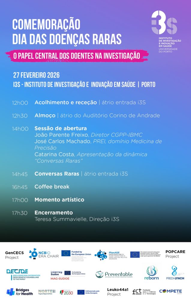 No dia 27 de fevereiro, irá decorrer no I3S – Instituto de Investigação e Inovação em Saúde, no Porto, a Comemoração do Dia das Doenças Raras, com o tema O Papel Central dos Doentes na Investigação.